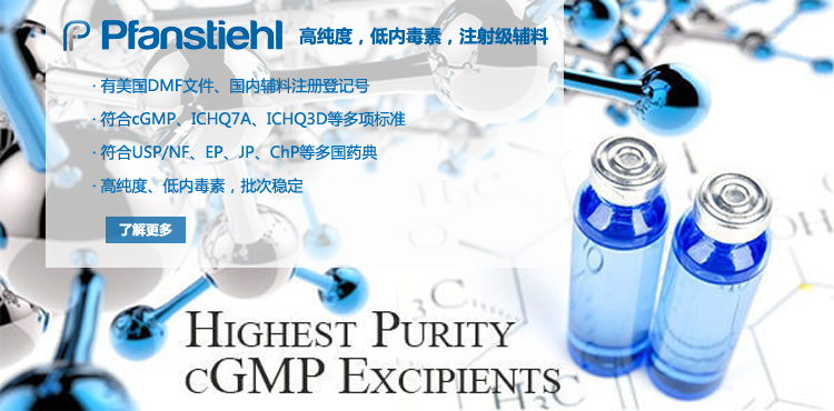 “熱烈祝賀Pfanstiehl的注射級甘氨酸Glycine(G-140)喜獲CDE登記號F20250000403, 這是Pfanstiehl產品獲得的第18個CDE登記號!”甘氨酸在醫藥輔料制劑中應用廣泛,, 可作為緩沖劑,增溶劑,穩定劑等,具有諸多優勢。Pfanstiehl秉承一貫高品質理念,為滿足全球生物制藥行業對于高品質甘氨酸的需求,隆重推出的注射級甘氨酸Glycine (G-140), 具有超高純度,超低內毒素,超低金屬殘留的特點,單獨檢測29種金屬離子,并且新增DNA,RNA,DNA酶,RNA酶和脂肪酶,亞硝酸鹽等多項質量指標的檢測,符合多國藥典規定(USP, EP, BP, JPE, ChP),可用于生物治療性藥物和疫苗的生產。產品信息:· 產品名稱:Glycine, High Purity, Low Endotoxin, Low Metals, USP, EP, BP, JPE, ChP (G-140)· 中文名稱:甘氨酸· 分子式:C2H5NO2· 分子量:75.07 g / mol· CAS號:56-40-6· 產品貨號:G-140產品特點: · 超高純度,超低內毒素,超低微生物含量,超低金屬雜質殘留· 質量指標新增DNA,RNA,DNA酶,RNA酶,脂肪酶和亞硝酸鹽檢測· 符合多國藥典:USP, EP, BP, JPE, ChP· 符合ICH Q3D標準· 符合GMP標準· 已獲DMF和CDE登記號 產品應用:· 緩沖劑· 穩定劑· 增溶劑如果您對Pfanstiehl注射級別Glycine G-140感興趣,歡迎聯系Pfanstiehl 中國區代理商北京西美杰科技有限公司獲得如下詳細的產品概況說明文件和測試樣品。Pfanstiehl Inc.最新產品系列如下,歡迎聯系北京西美杰科技有限公司獲取100g裝免費樣品。北京西美杰科技有限公司為Pfanstiehl中國代理,為客戶提供完善的技術支持與售后服務。歡迎撥打西美杰客服電話400-050-4006或者登陸網站www_xmjsci_com.mnrjxt.mobi了解更多信息。 更多>西美杰介紹